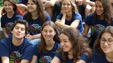 Erwachsene stehen auf einer Kriegsgräberstätte