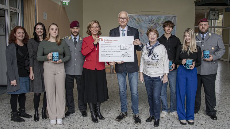 So etwas gab es im Saarland noch nie: Gleich drei Gymnasien haben dieses Jahr mit drei verschiedenen Einheiten der Luftlandebrigade 1 die Aktion „Schule und Bundeswehr sammeln für den Volksbund“ durchgeführt. Ein beachtlicher Betrag ist zusammengekommen: 6.543,46 Euro brutto! Bei den Scheckübergaben bedankte sich der Landesverband von Herzen bei allen Unterstützern.