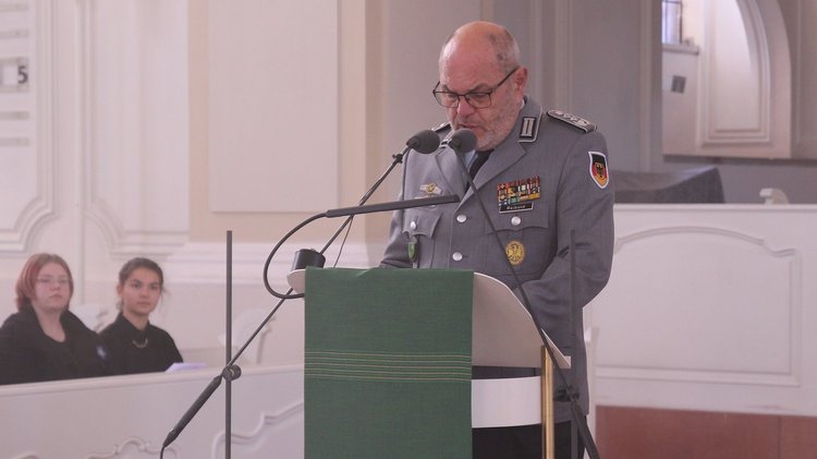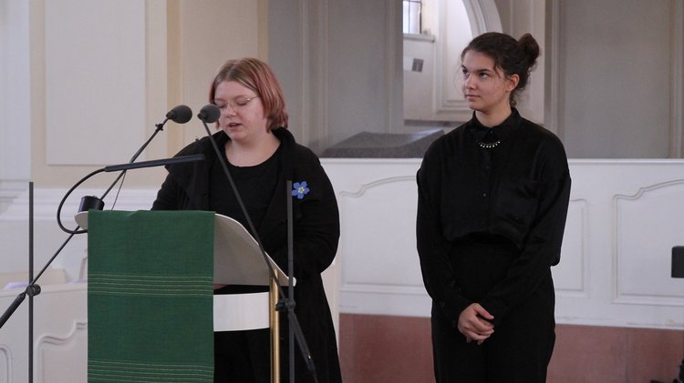 Maurice Kuntz, Sprecher des Jugendarbeitskreises des Volksbundes, zeigte auf, welches Leid das ukrainische Volk im Zweiten Weltkrieg ertragen musste, und wie viele Menschen nun im aktuellen Krieg durch verschiedene Kampfhandlungen schon ihr Leben ließen. Er schaute besorgt in die Zukunft und fragte sich, ob der Dritte Weltkrieg bevorstünde. Er wolle sich mit dem Jugendarbeitskreis für eine friedvolle Zukunft einsetzen.