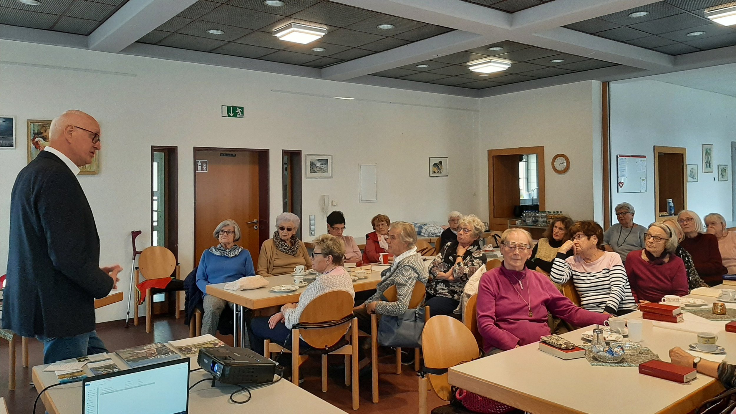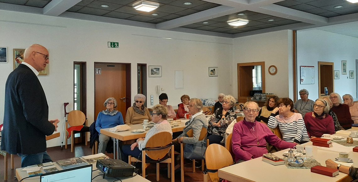 Auf Einladung des Frauenbundes der Protestantischen Friedenskirche in Homburg-Beeden besuchten der Landesvorsitzende Werner Hillen und Mitarbeiterin des LV Saar, Amélie Zemlin-Kohlberger, deren monatliche Zusammenkunft am 16. November. Die Frauen zeigten sich an der Arbeit des Volksbundes sehr interessiert. Deshalb stellte Werner Hillen den Volksbund in Wort und Bild vor.