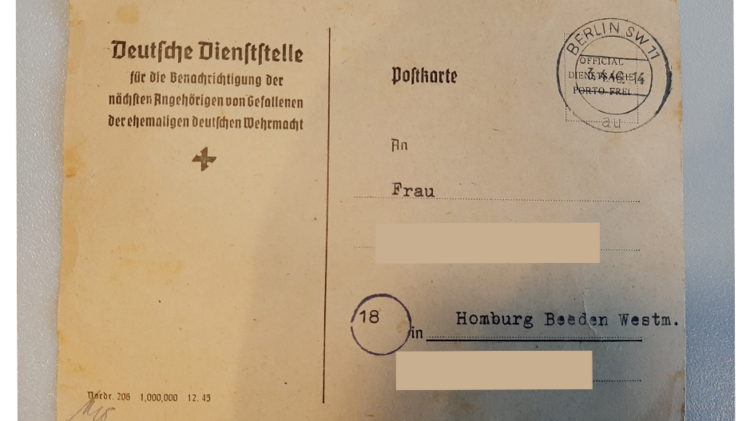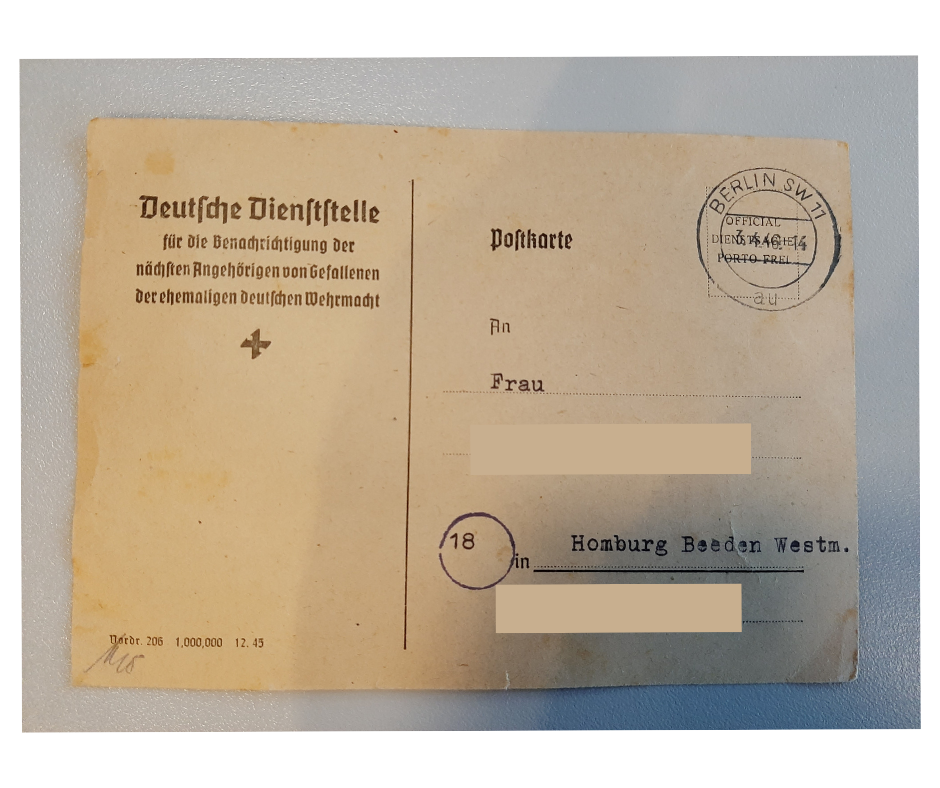 Die anschließende Fragerunde brachte dann noch eine Überraschung. Eine Dame hatte eine Postkarte mitgebracht, die ihrer Mutter von der Deutschen Dienststelle (WASt – heute Bundesarchiv) im März 1946 zugesandt wurde. Darin wurde sie über den Tod ihres Ehemannes informiert. Bis Mitte November letzten Jahres wusste die Dame immer noch nicht, wo ihr Vater begraben war. Nach einem Blick in die Datenbank des Volksbundes – Gräbersuche online – konnte Amélie Zemlin-Kohlberger ihr dann die genaue Grablage mitteilen. Dieser Besuch war von Erfolg gekrönt. Denn es gibt nichts Schöneres als Gewissheit über den Verbleib eines geliebten Menschen zu haben.