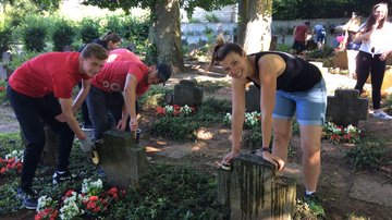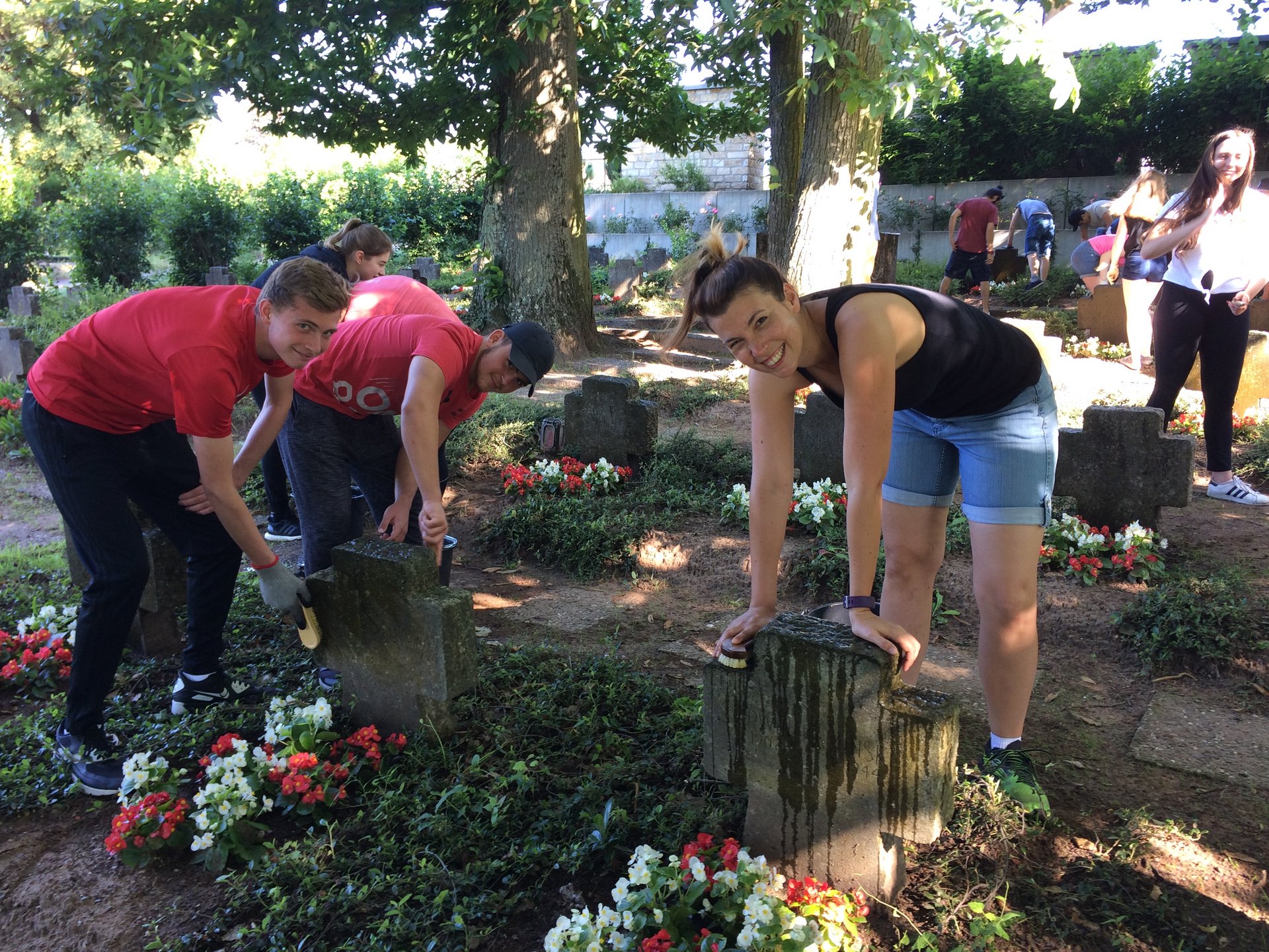 - (Schul-) Projekte zu friedenspädagogischen sowie historisch-politischen Themen, auch im Bereich des sozialen Engagements. Die inhaltlich-thematische Bildungsarbeit kann in Absprache gerne auch um praktische Pflegetätigkeiten der Schülerinnen und Schüler an Kriegsgräber(stätten) und Denkmälern erweitert werden. Diese bieten eine weiteren, mit den Händen tatsächlich "greifbaren" Zugang zur Beschäftigung mit den Auswirkungen von Krieg und Gewalt.
