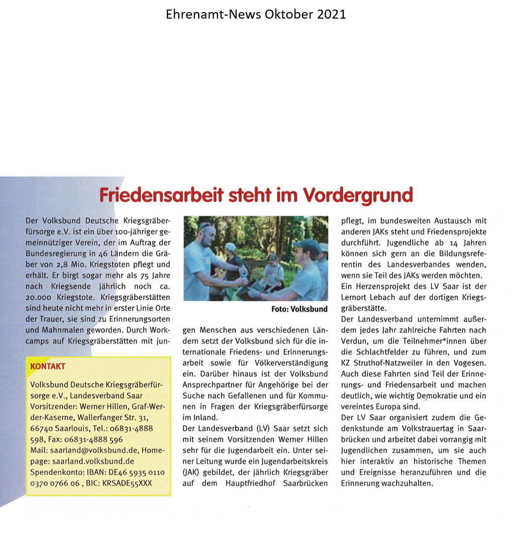 - Oktober 2021: Ehrenamt-News: Friedensarbeit steht im Vordergrund