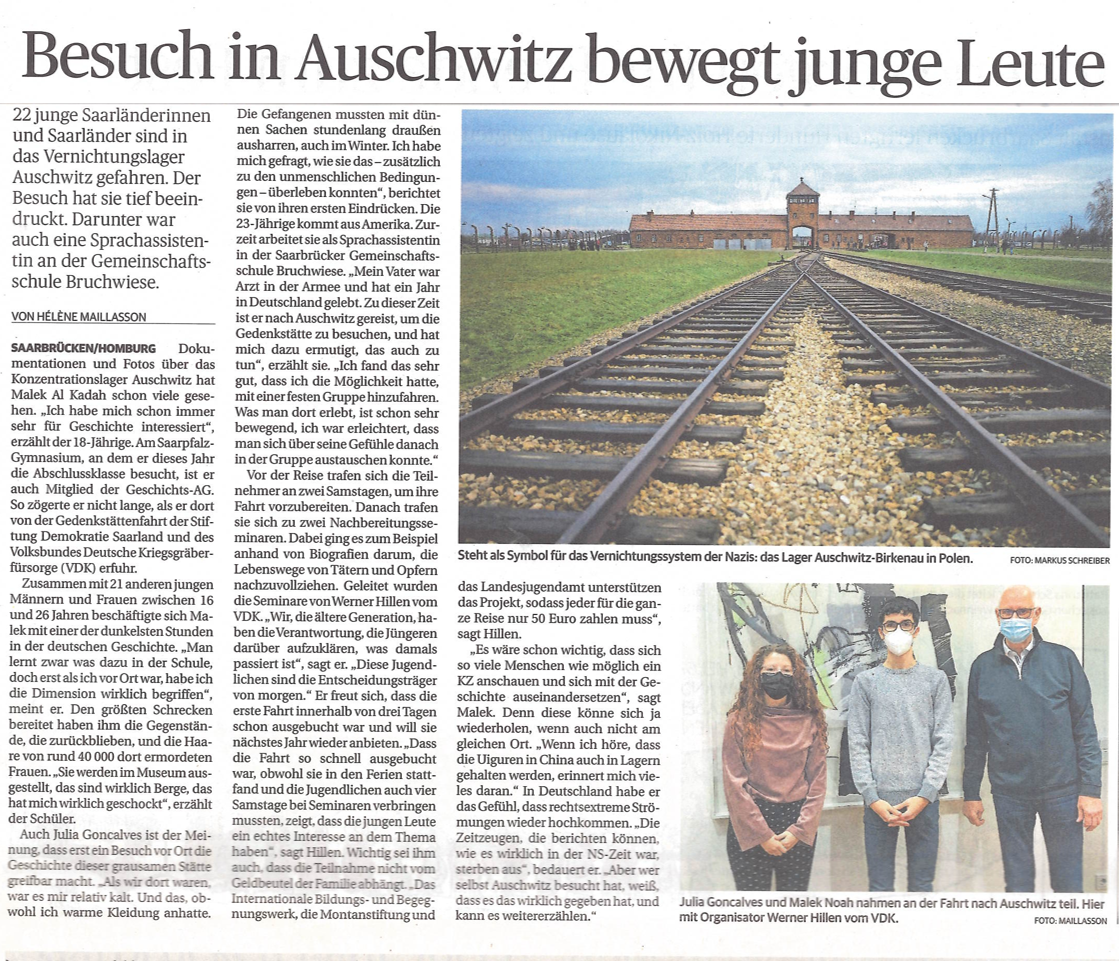 - 23.12.2021: Saarbrücker Zeitung: Besuch in Auschwitz bewegt junge Leute