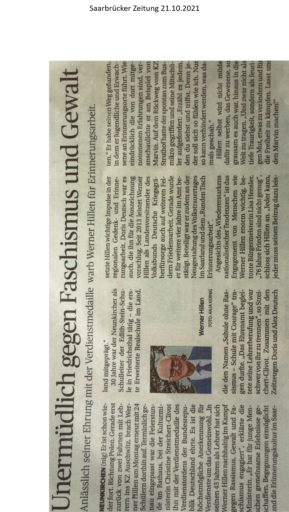 - 21.10.2021: Saarbrücker Zeitung: Unermüdlich gegen Faschismus und Gewalt