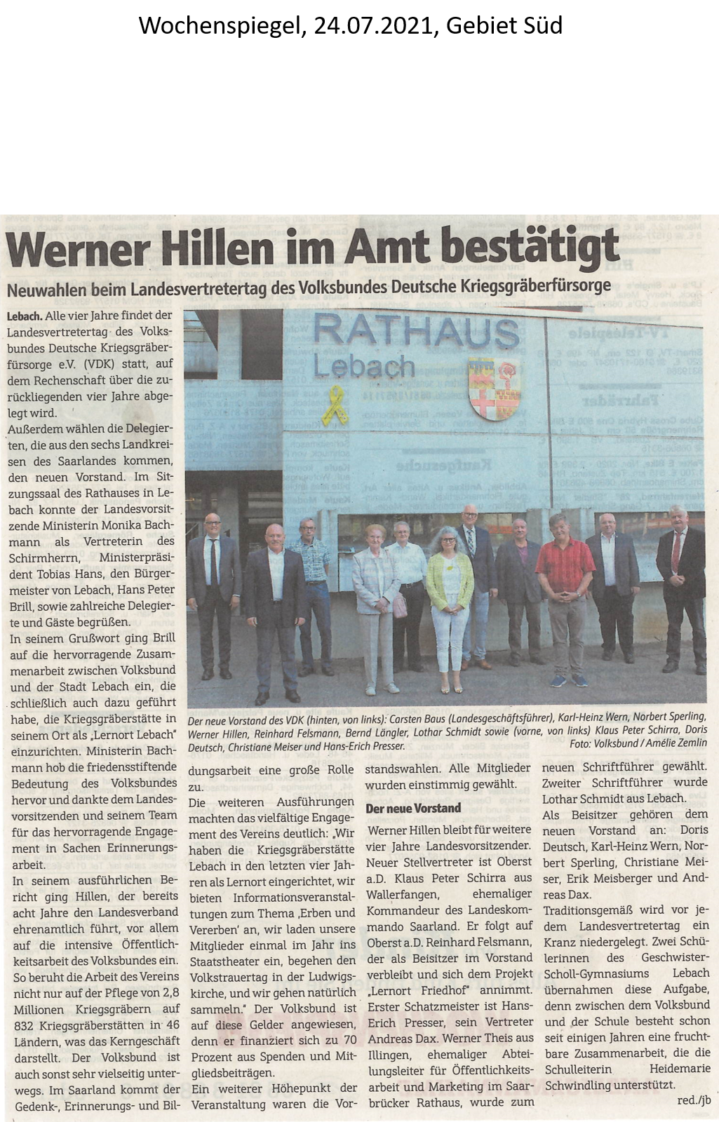 - 17.07.2021: Saarbrücker Zeitung: VDK Saarland präsentiert seine neue Führung