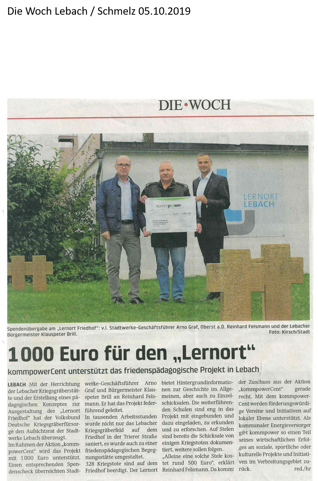 - 05.10.2019: Die Woch: kommpowerCent unterstützt Lernort Lebach mit 1.000 Euro