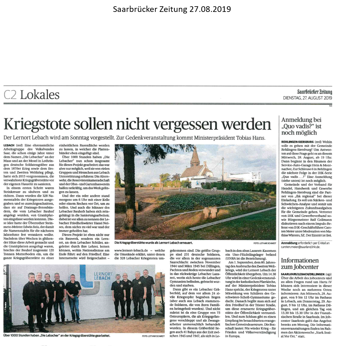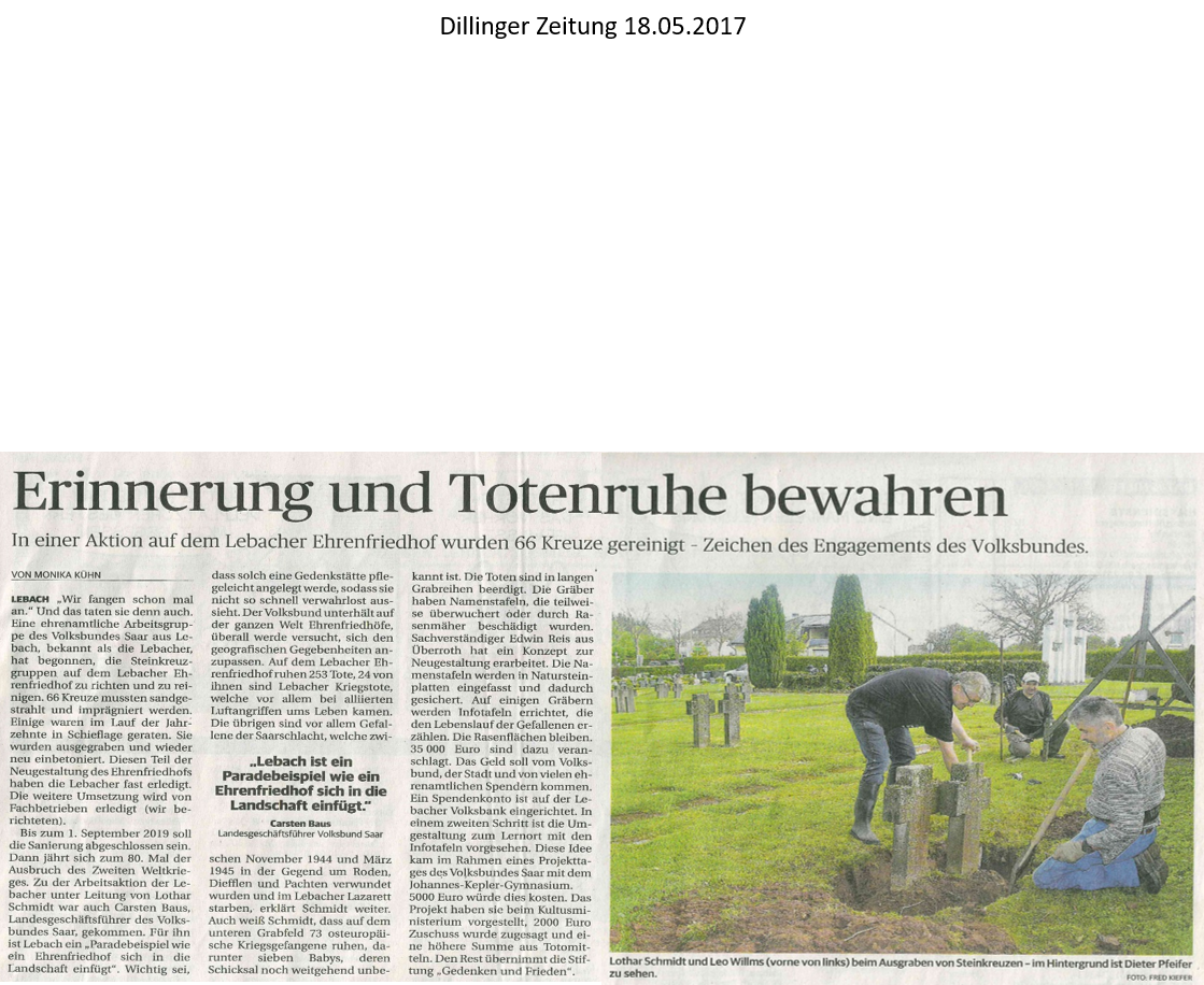 - 30.01.2017: Dillinger Zeitung: "Lebacher Ehrenfriedhof wird Lernort"