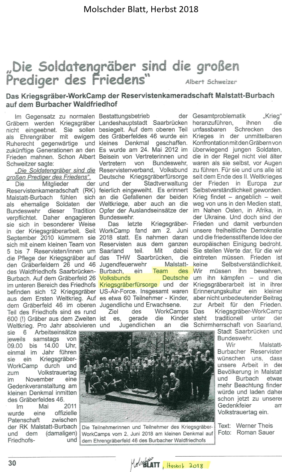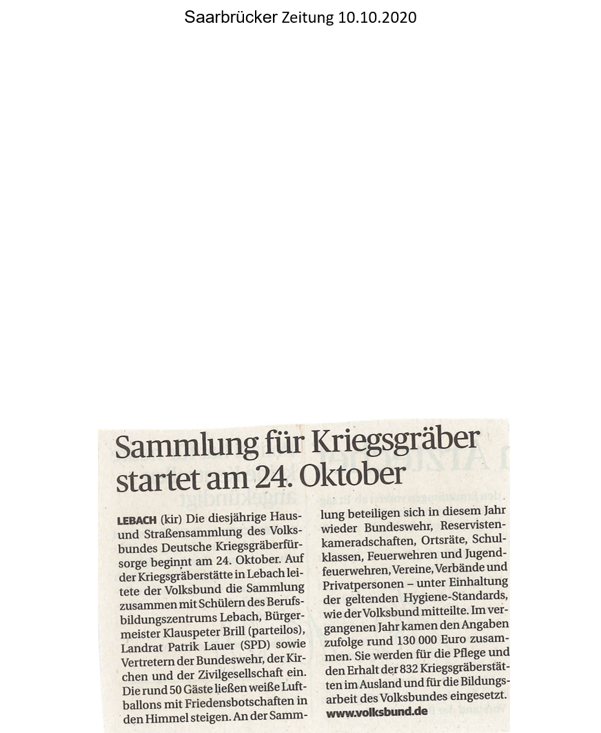 - 10.10.2020: Saarbrücker Zeitung: Sammlung für Kriegsgräber startet am 24. Oktober