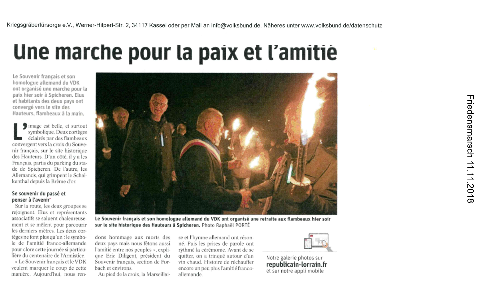 - 11.11.2018: Républicain Lorrain: Friedensmarsch bei Spicheren