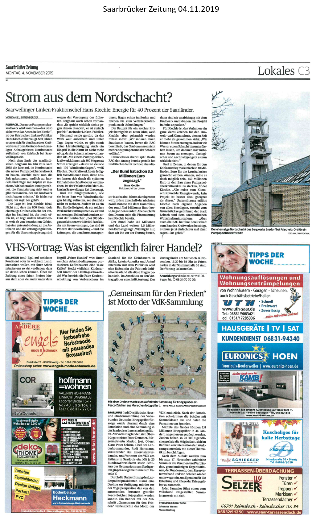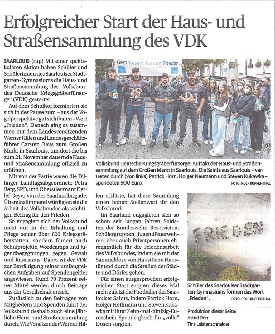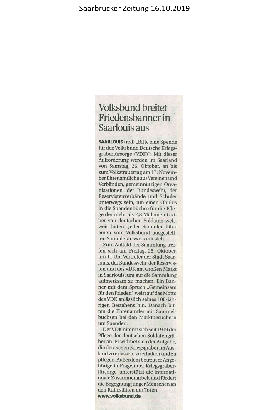 - 04.11.2019: Saarbrücker Zeitung: "Gemeinsam für den Frieden" ist Motto der VDK-Sammlung