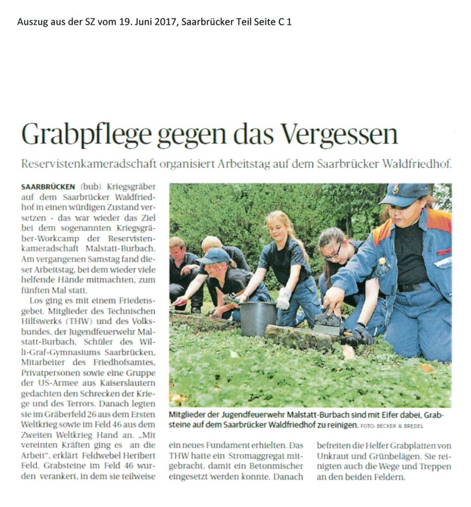- 19.06.2017: Saarbrücker Zeitung: Arbeitseinsatz mit Jugendlichen auf dem Saarbrücker Waldfriedhof