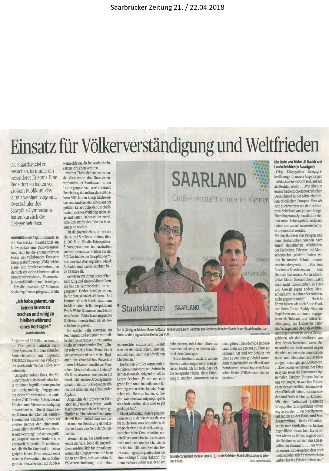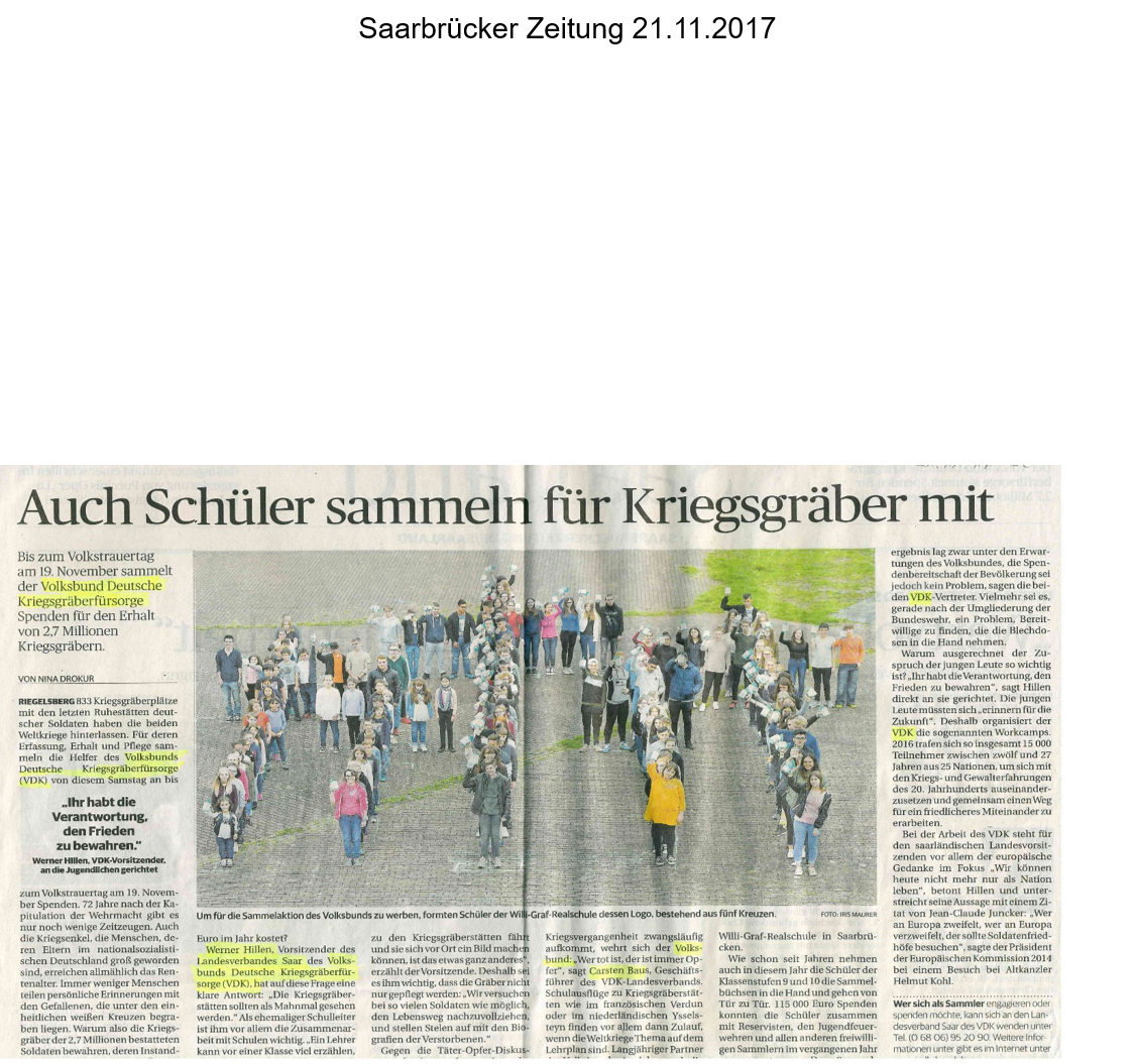 - 21.11.2017: Saarbrücker Zeitung: Schüler stellen Volksbundlogo nach