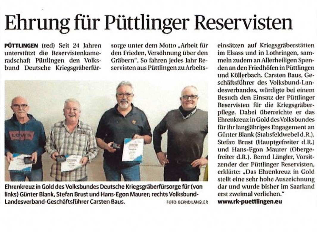 - 26./27.02.2022: Saarbrücker Zeitung: Ehrung für Püttlinger Reservisten