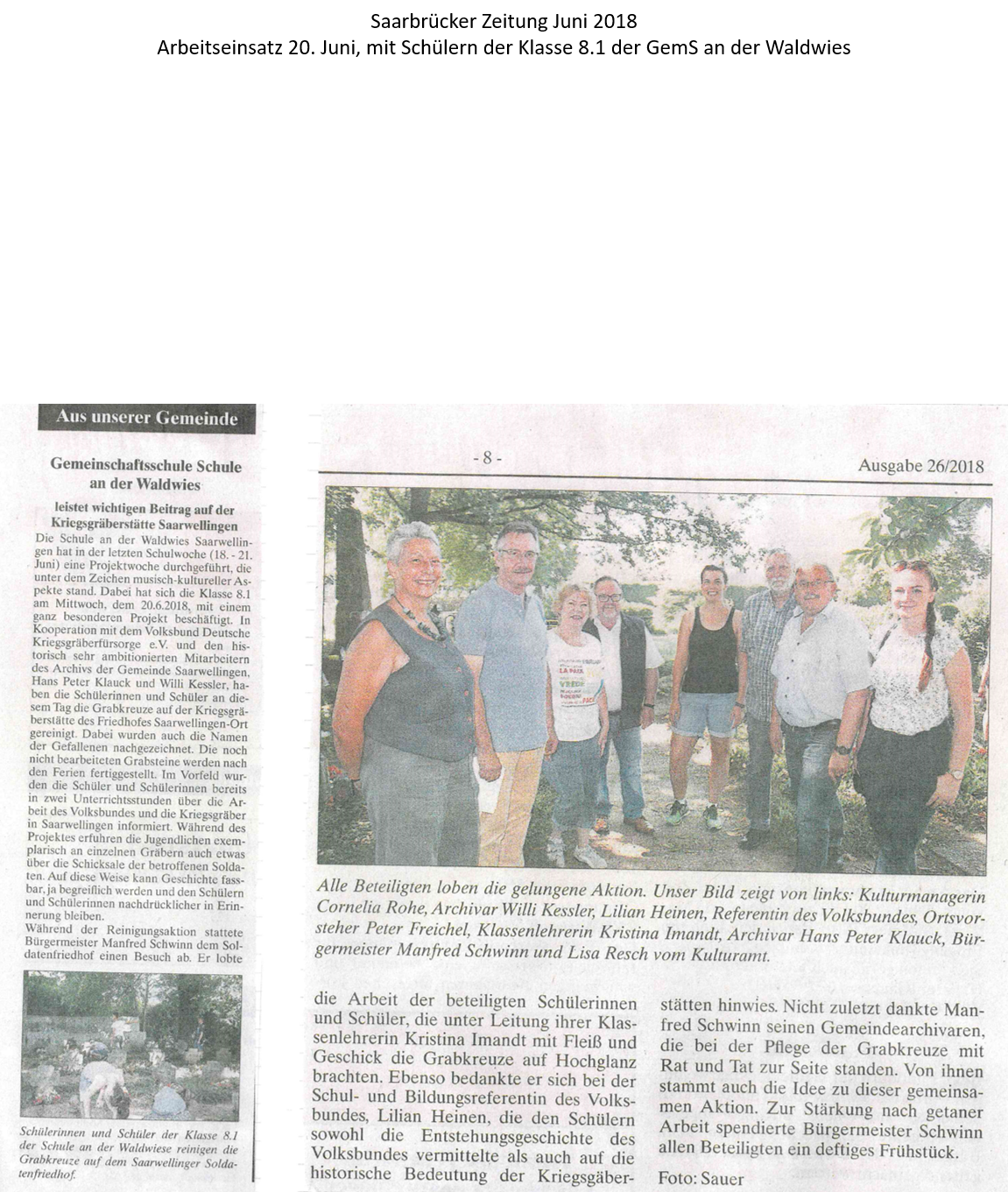 - 20.06.2018: Saarbrücker Zeitung: Arbeitseinsatz auf Friedhof in Saarwellingen