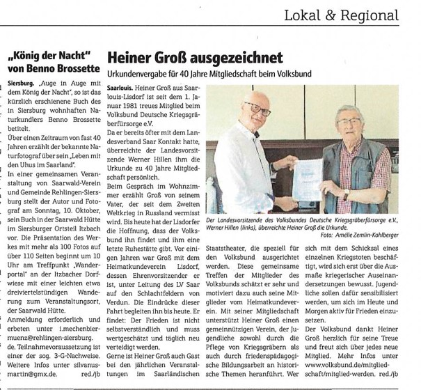 - 09.10.2021: Saarbrücker Zeitung: Heiner Groß ausgezeichnet